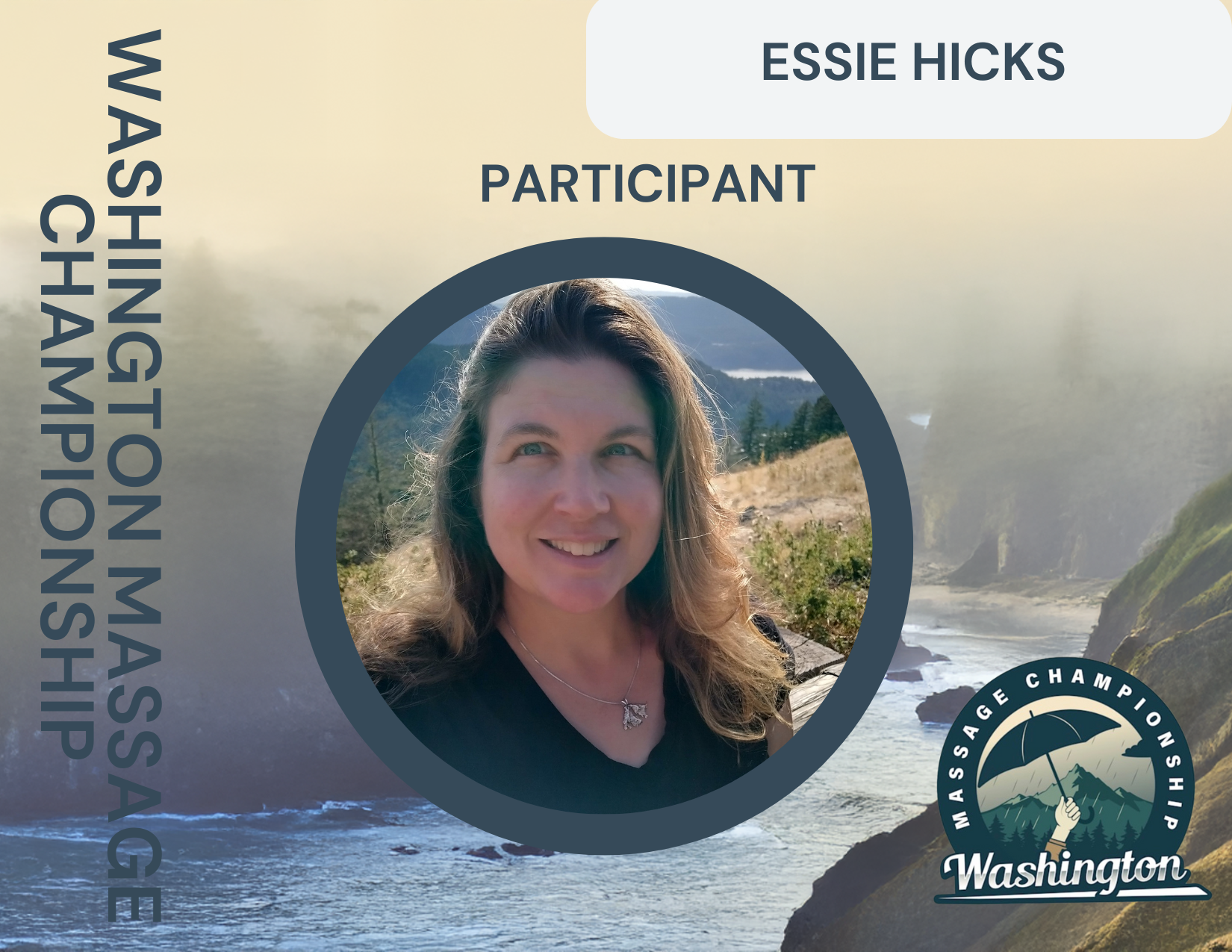 A Silver Medalist in Sports Massage (Pacific Northwest Massage Championship, 2025), Essie Hicks is an Advanced Clinical Sports Massage practitioner and served on the Washington State Sports Massage Team (2000–2006) in multiple leadership roles.